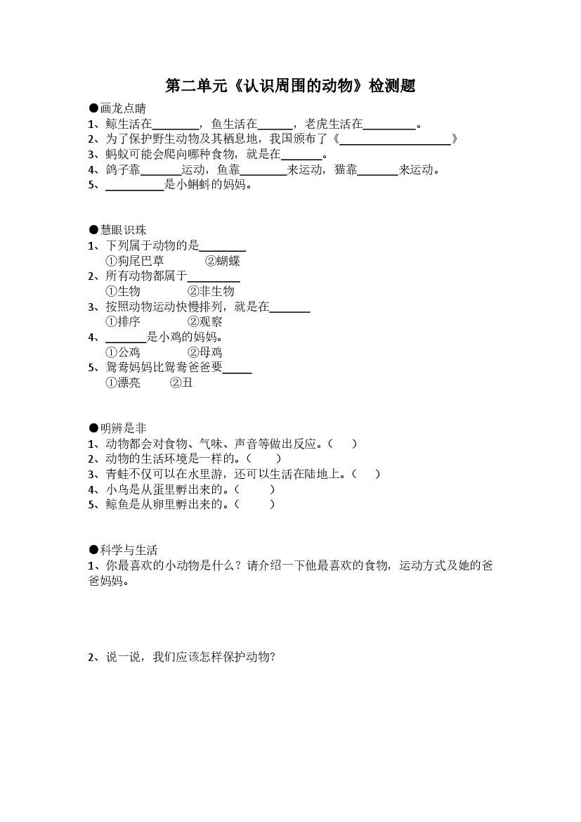 一年级下册科学试题期末检测题青岛版(六年制)有答案