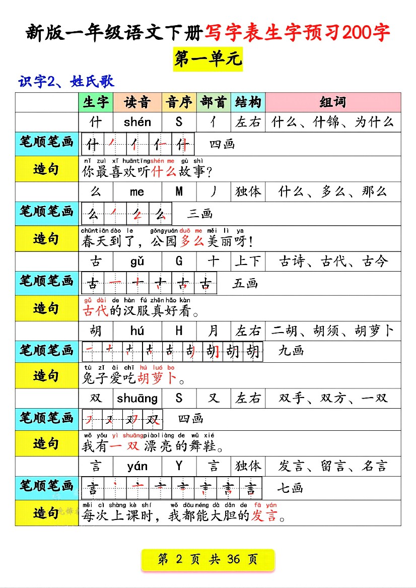 首页 > 全部 > 预习清单 > 【预习】新版一年级语文下册写字表生字预习200字