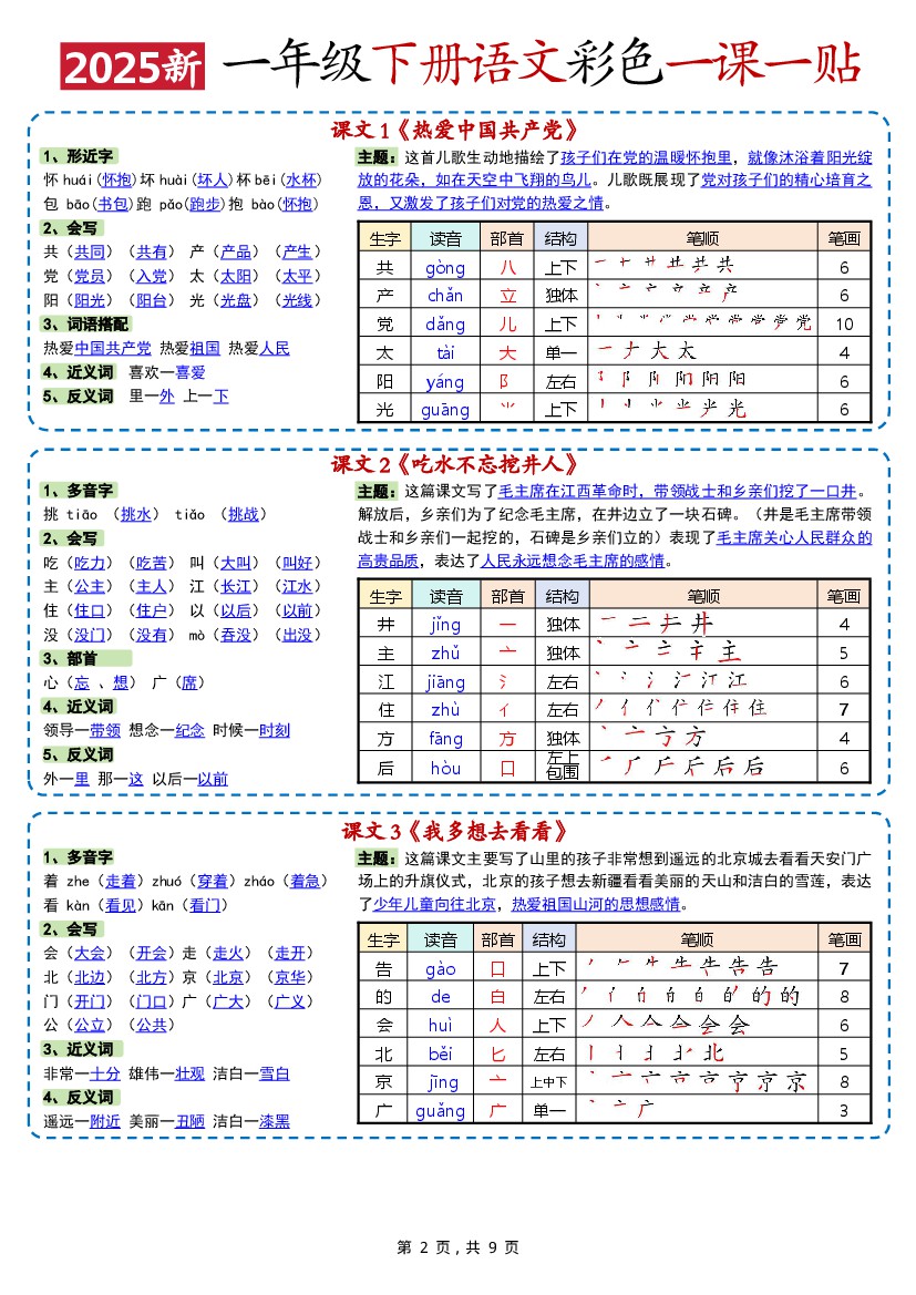 首页 > 全部 > 随堂课贴 > 25春新一下语文彩色一课一贴高清(9页)