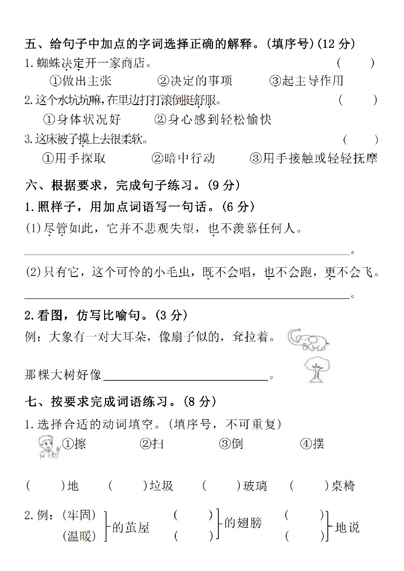 小学 2025二年级语文下册真题检测卷(第七单元)