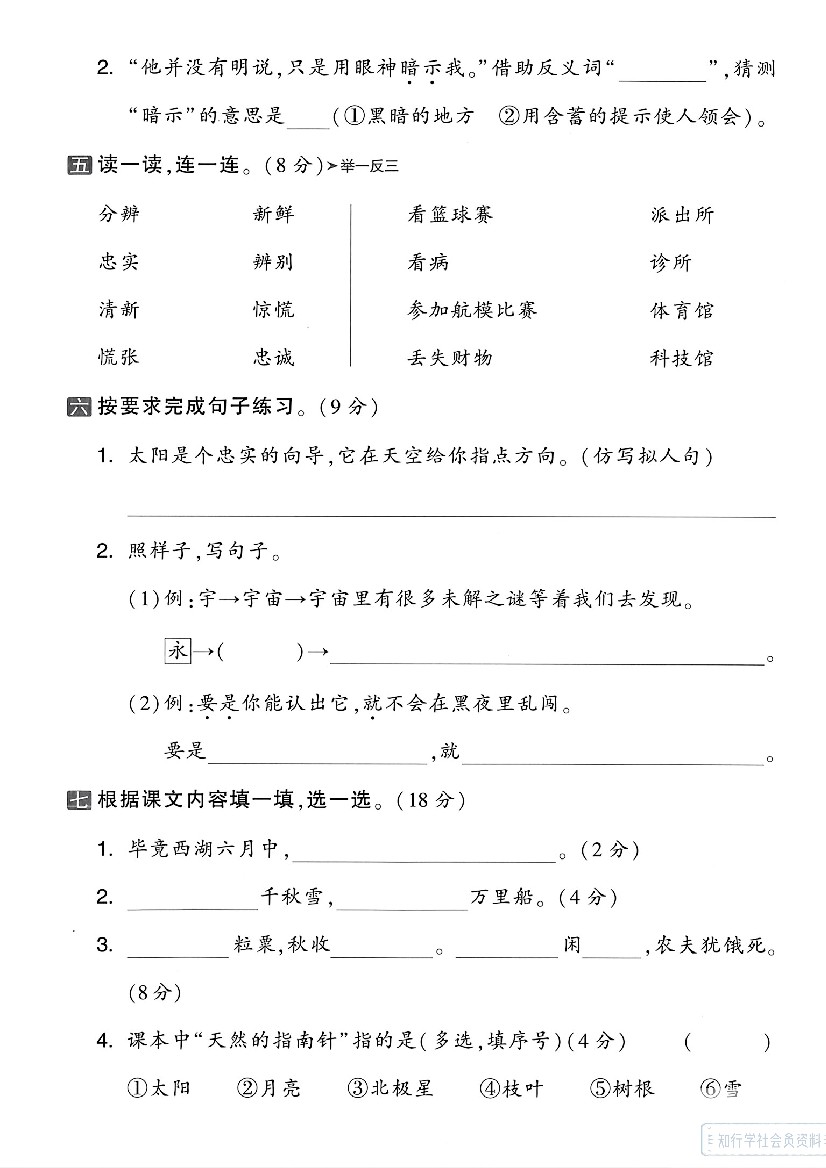 二年级(下)语文第六单元拔尖测试卷-毕竟(5页)