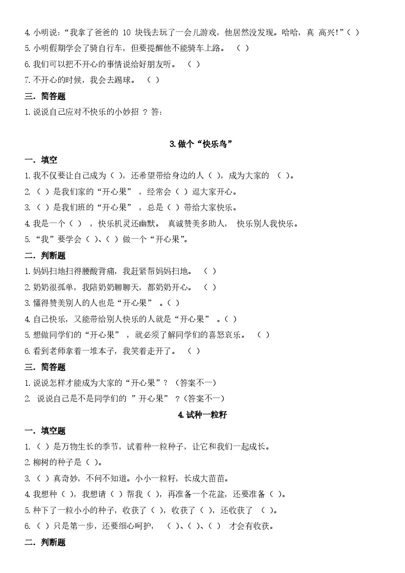 首页 > 全部 > 课时练习 > 二年级下册《道德与法治》一课一练(打印版含答案)