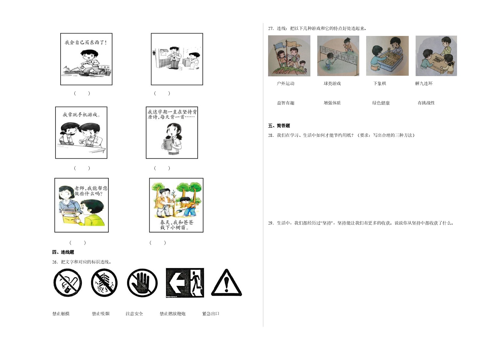 小学 期末测试(试题)部编版道德与法治二年级下册