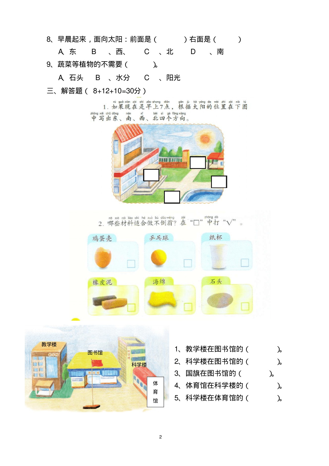 首页 > 全部 > 期末试卷 > 粤教版二年级科学下册期末达标测试卷(附答案)