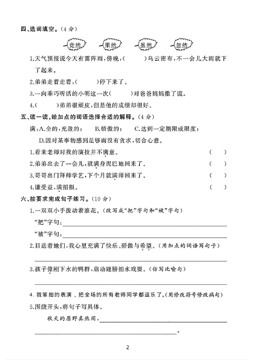 小学 三年级(下)语文第六单元素养评估卷(含答案8页)