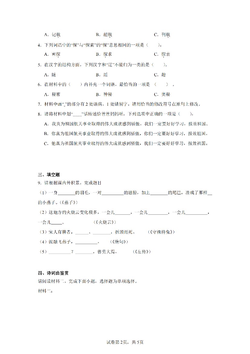 首页 > 全部 > 期末试卷 > 24-25三下语文期末试卷三(含答案12页)
