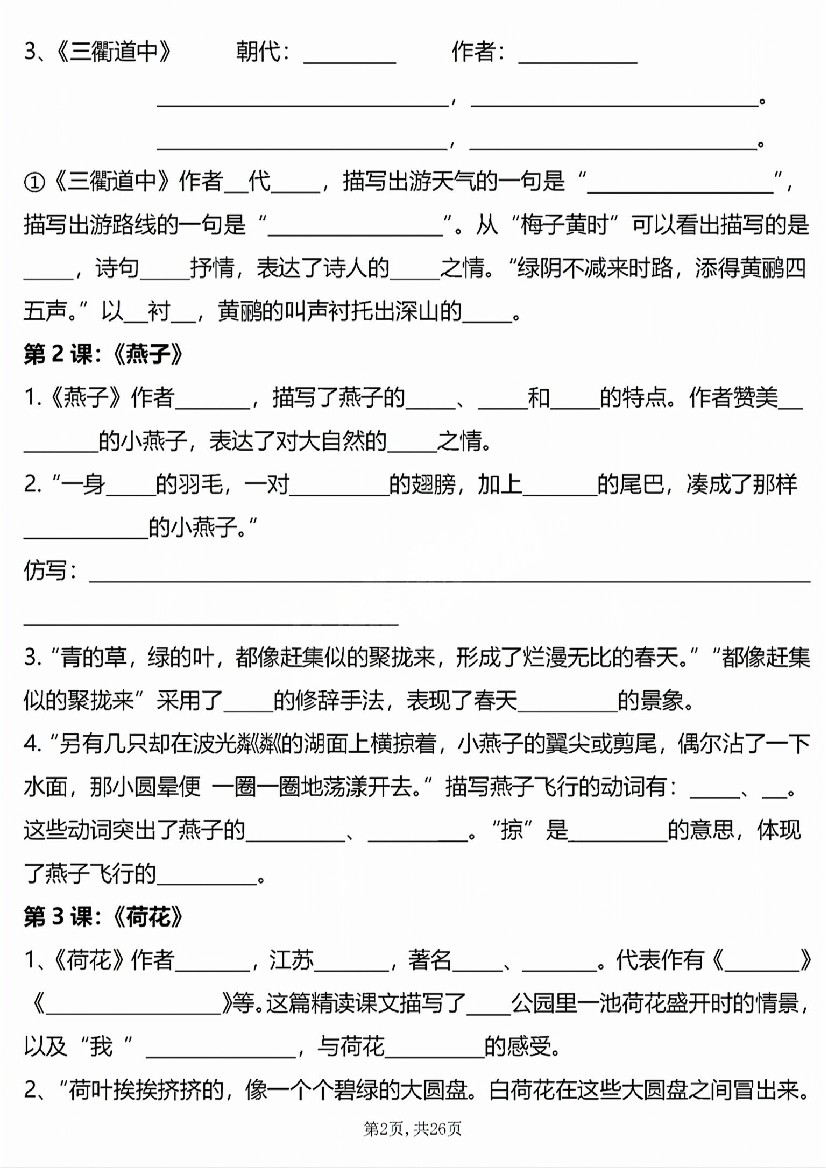 三年级(下)语文1-4单元期中复习课内核心知识点梳理