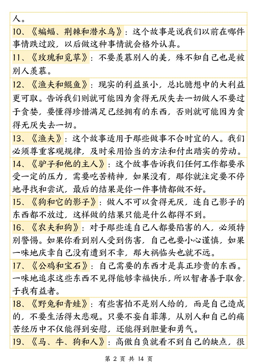 首页 > 全部 > 知识要点 > 三年级(下)语文必背《伊索寓言》寓意140篇