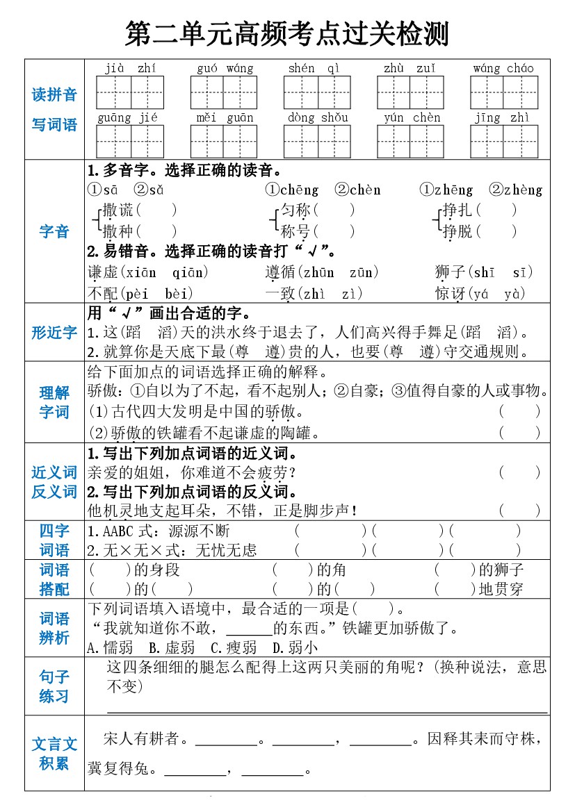 三(下)语文1-8单元【高频考点过关检测】