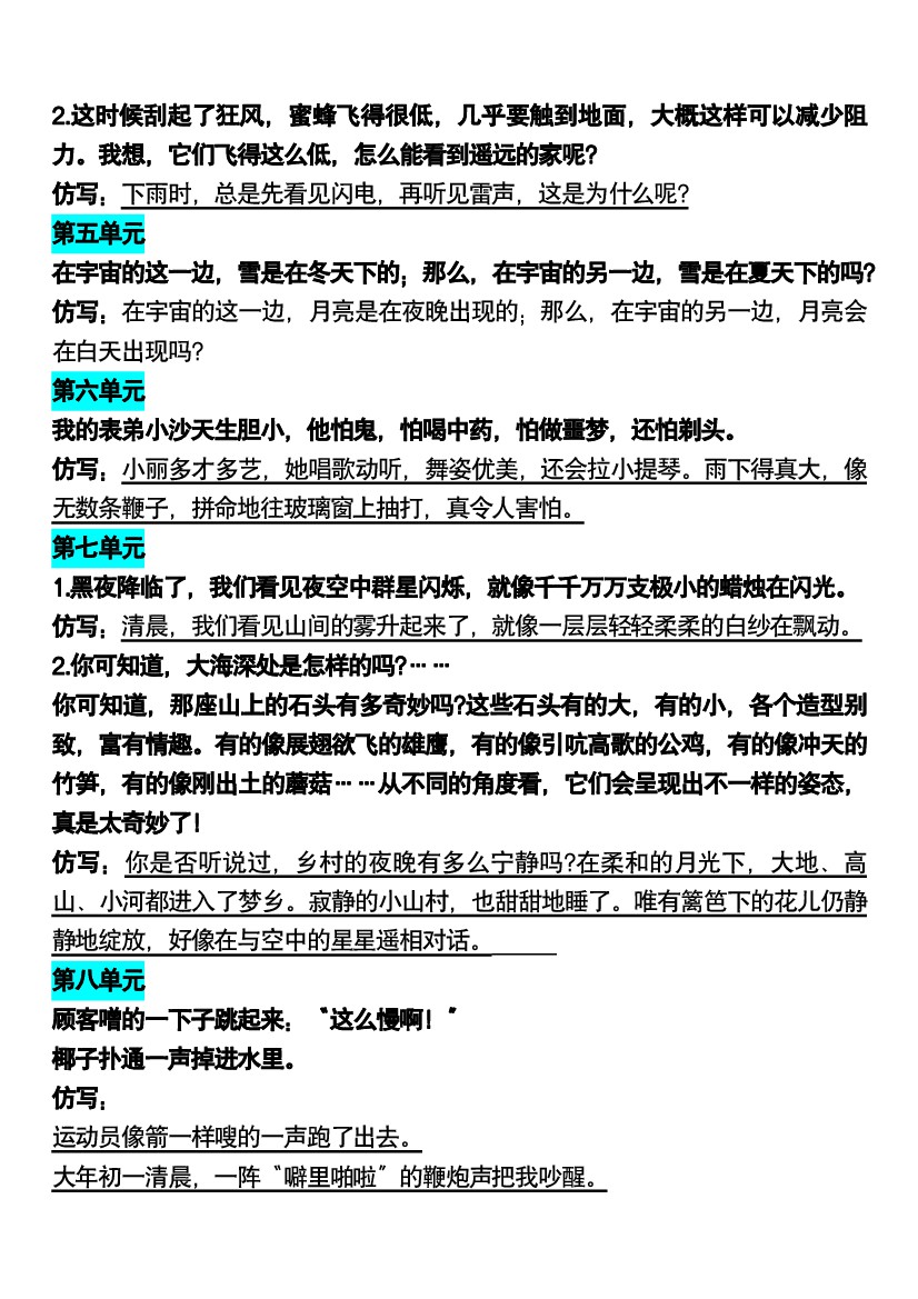 小学 三(下)语文考点课内句子仿写