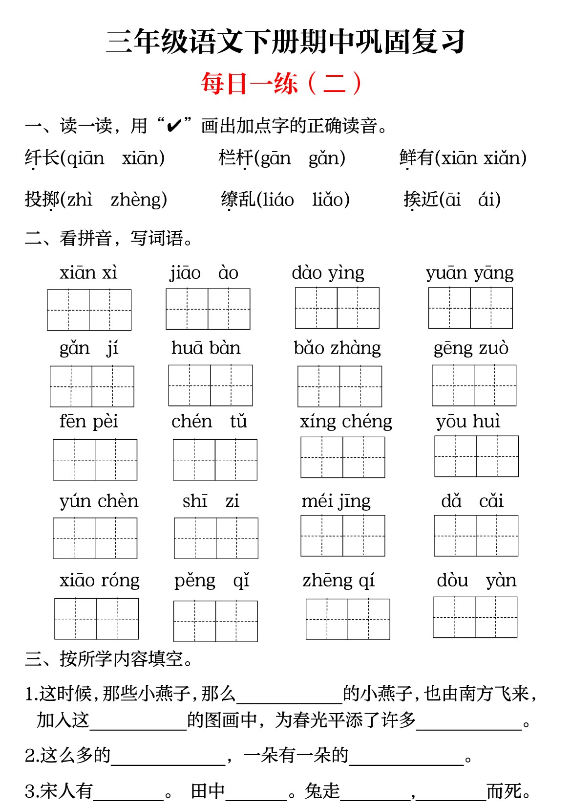 首页 > 全部 > 专项练习 > 三下语文期中巩固复习