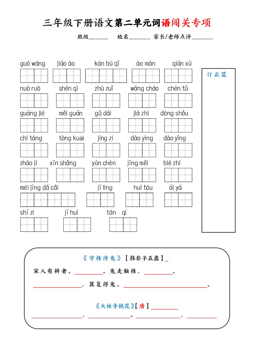 首页 > 全部 > 专项练习 > 三(下)语文全册1-8单元看拼音写词语