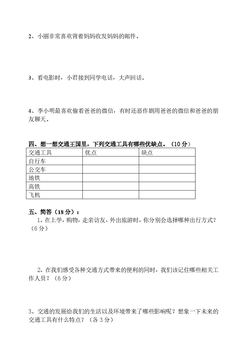 小学 第四单元多样的交通和通信单元培优(含答案)