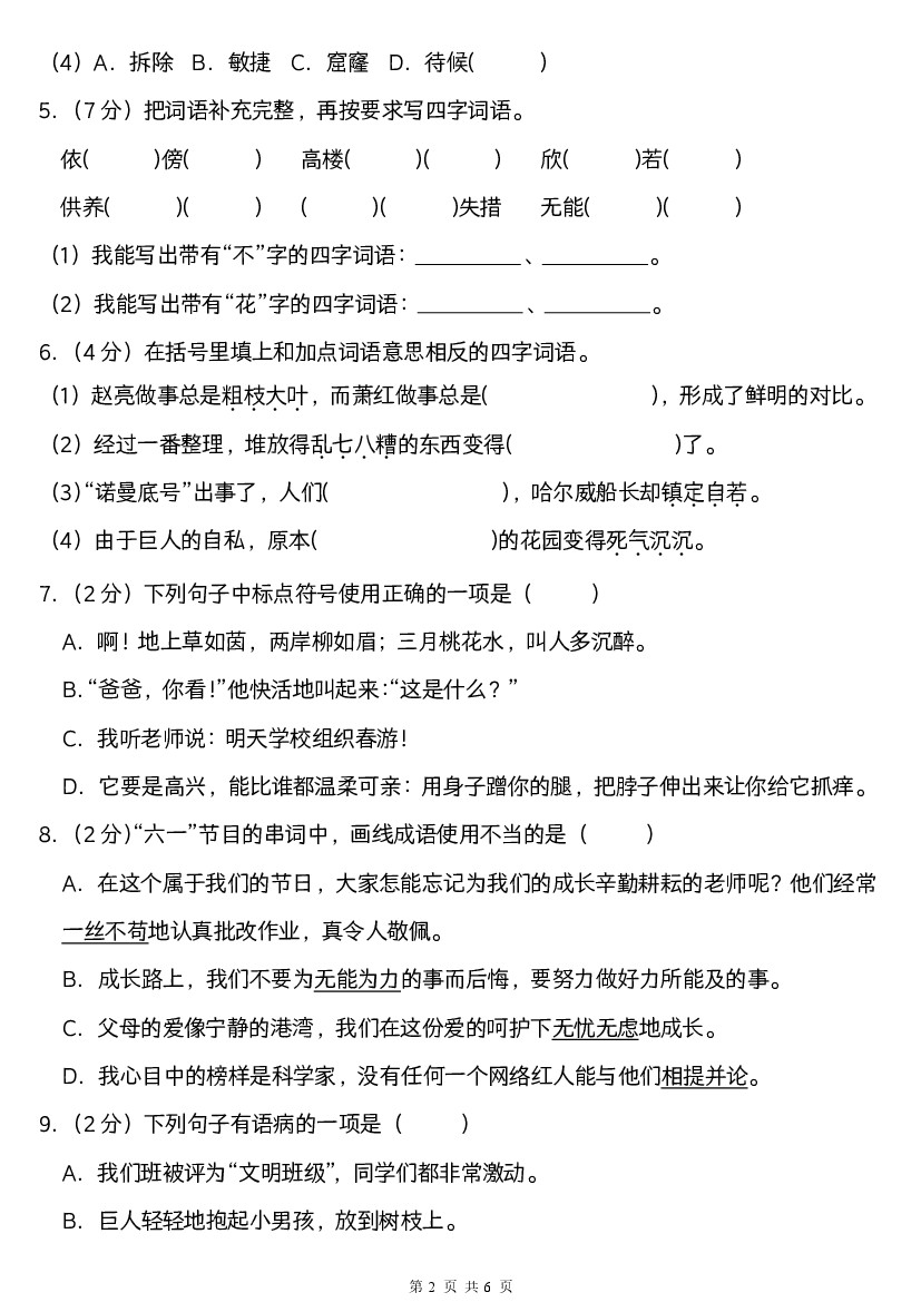 首页 > 全部 > 期末试卷 > 四年级下册语文期末冲刺押题试卷(一)