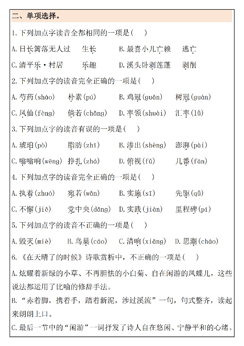 小学 四年级下册语文期末冲刺满分特训终极押题4页