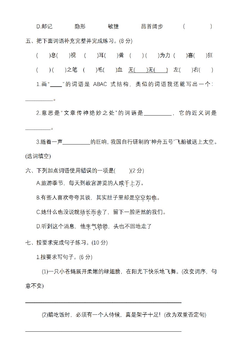 首页 > 全部 > 期中试卷 > 四下语文期中名校真题测试卷-屋檐照例