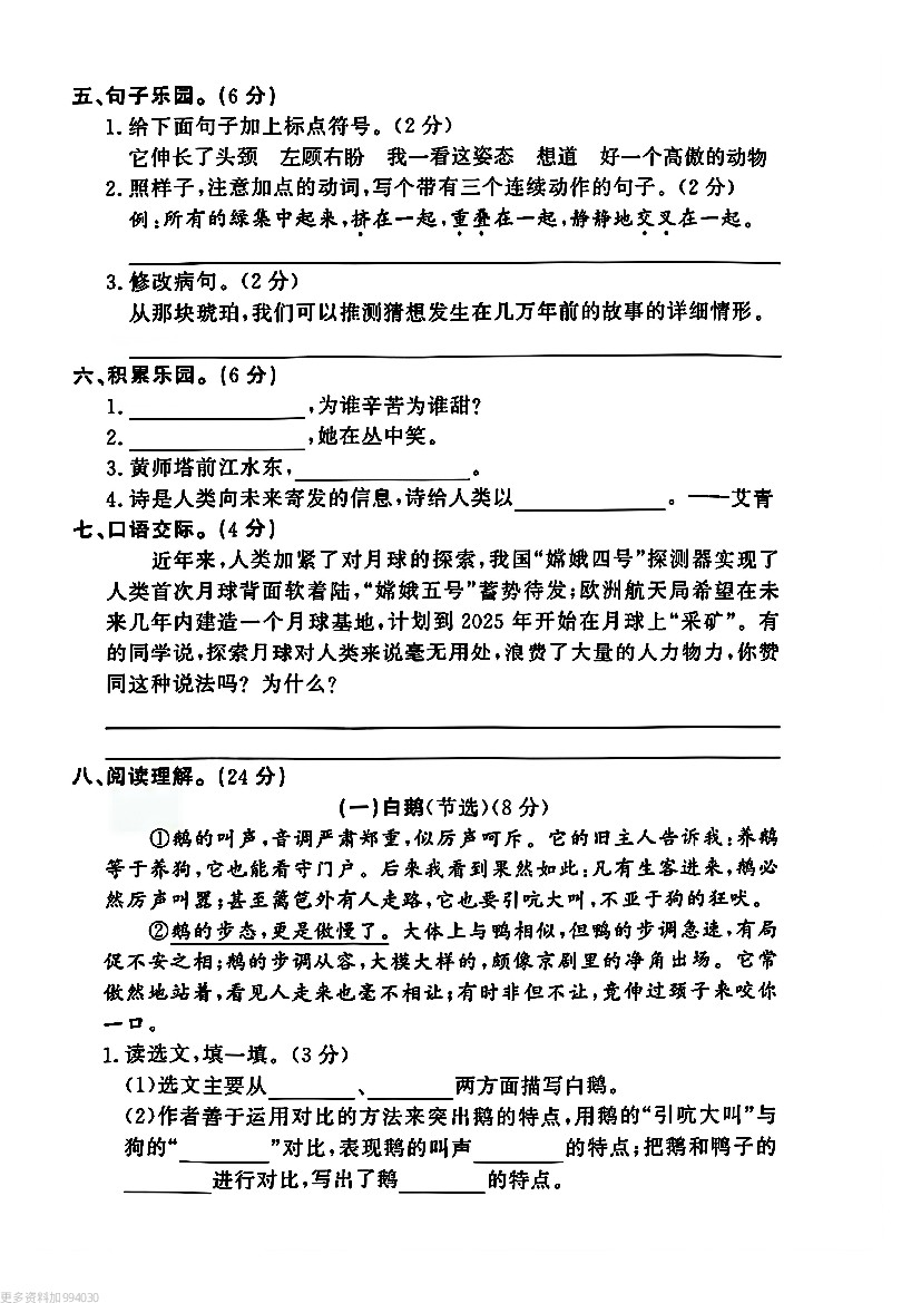 首页 > 全部 > 期中试卷 > 四年级下册语文期中押题卷