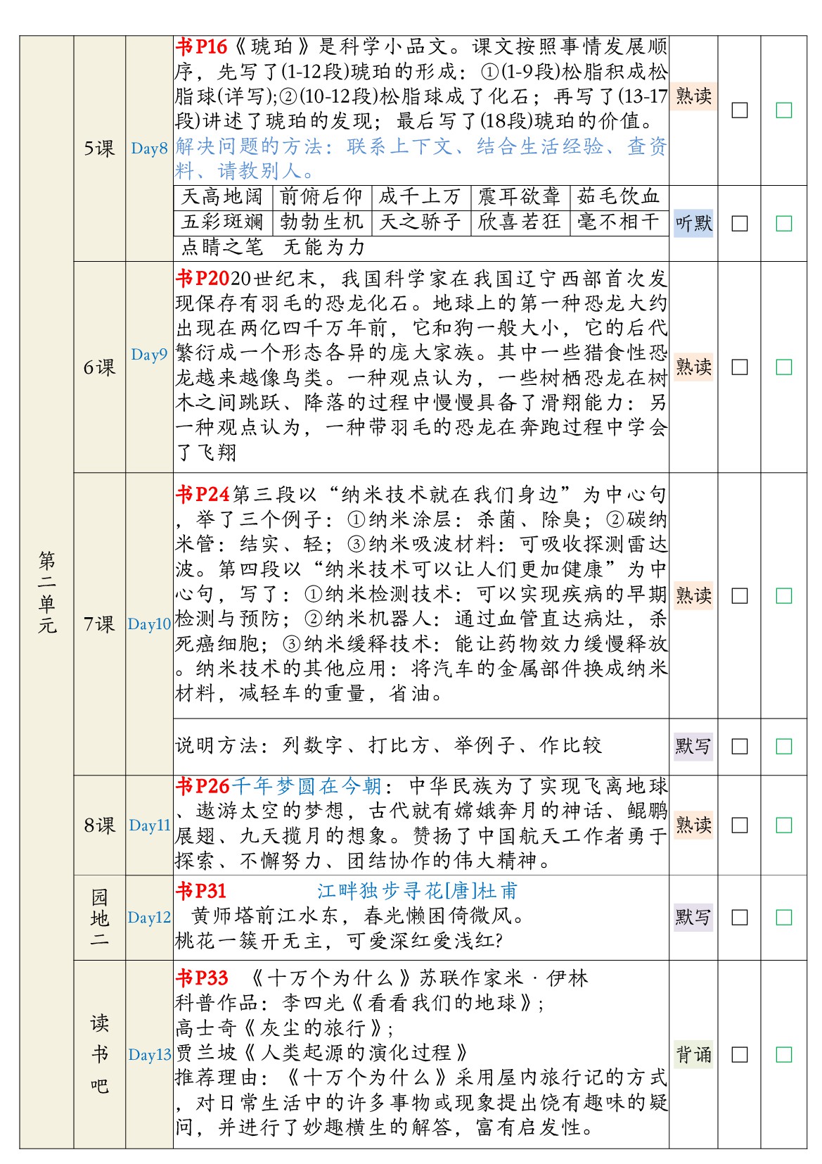 小学 四年级(下)语文【期末复习背诵闯关表】