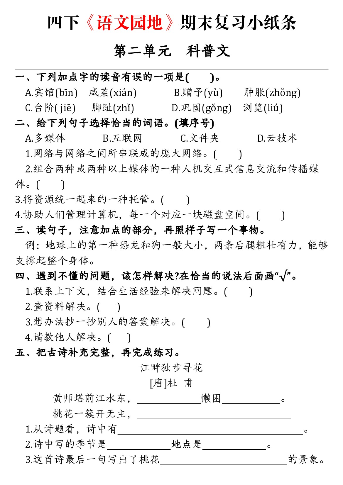 首页 > 全部 > 专项练习 > 四年级(下)语文【期末语文园地词句段练习单】