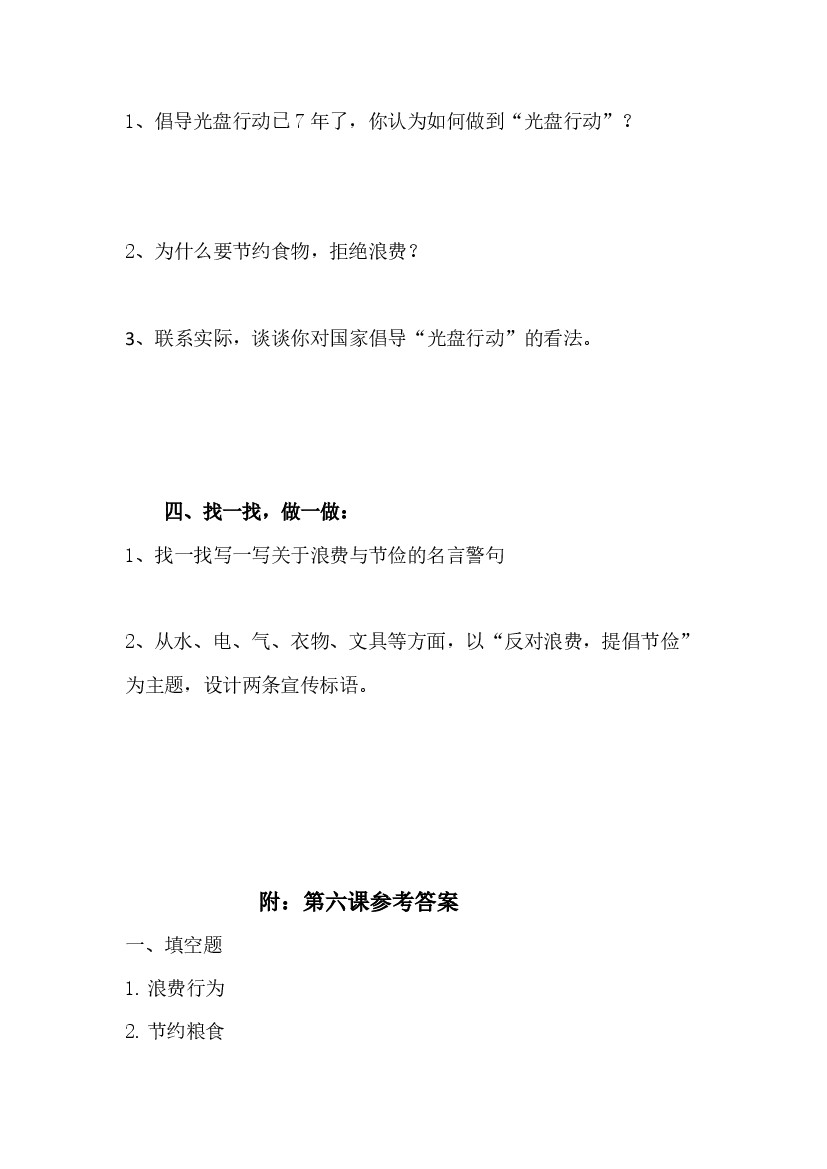 小学 人教部编版四年级下册《道德与法治》第6课有多少浪费本可避免课课练
