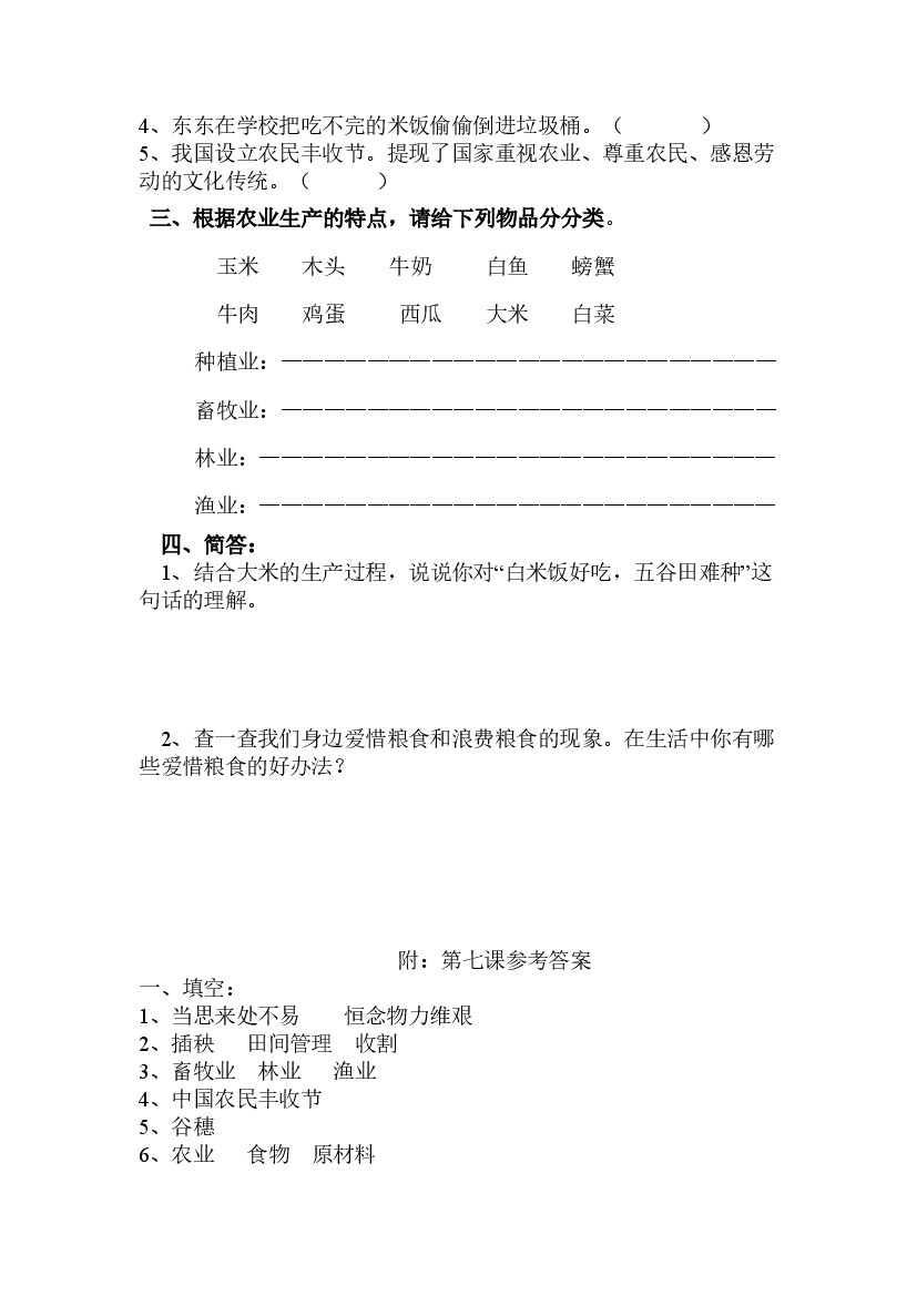 首页 > 全部 > 课时练习 > 人教部编版四年级下册《道德与法治》第7课我们的衣食之源课课练