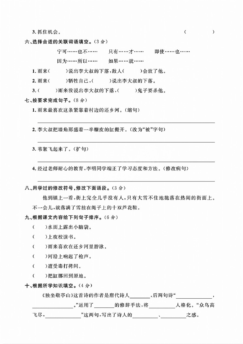 首页 > 全部 > 单元测试 > 四年级(下)语文第六单元测试卷