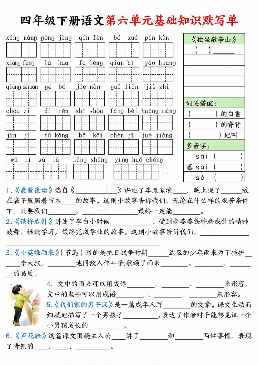 小学 四年级(下)语文第5-8单元基础知识默写单