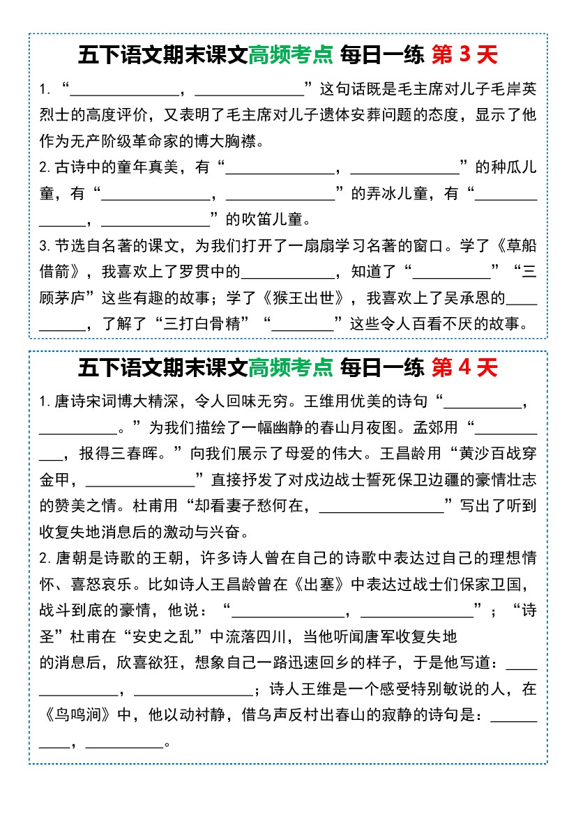 五(下)语文课文高频考点每日一练(共10天)