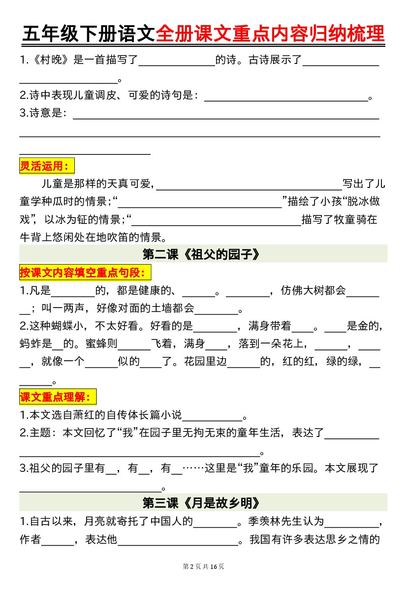 首页 > 全部 > 知识要点 > 五下语文全册课文重点内容归纳梳理空白16页