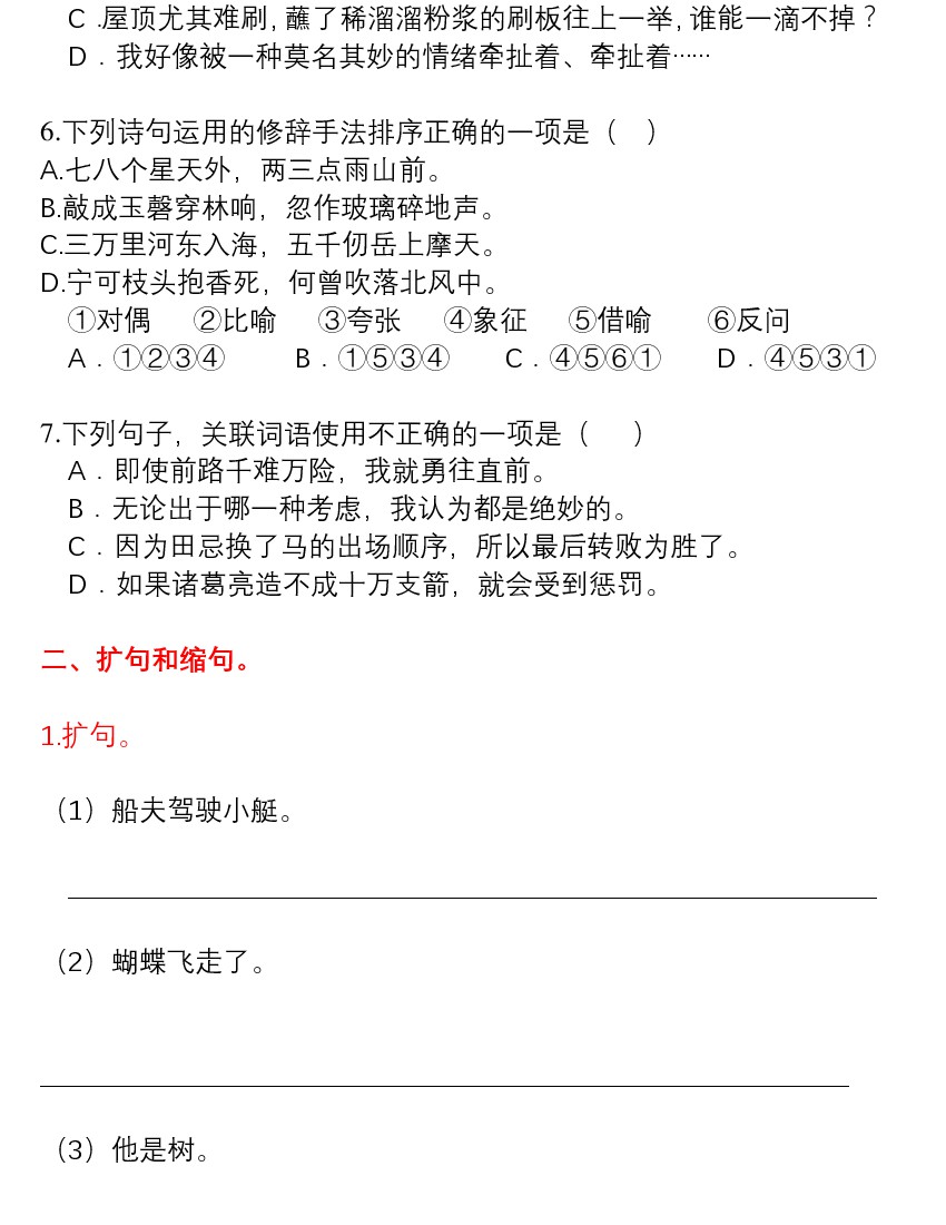 首页 > 全部 > 专项练习 > 五(下)语文:多类句子专项练习