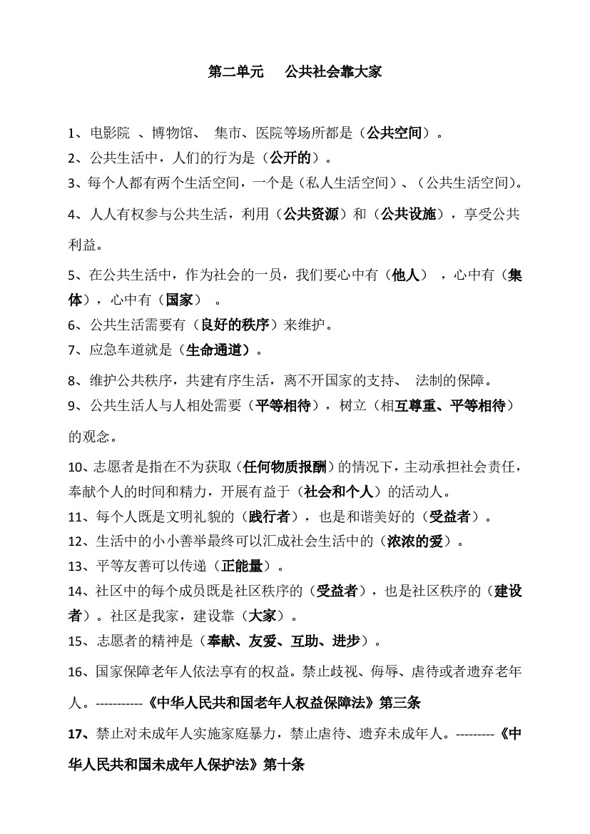 小学 五年级下册道德与法治知识点汇编(分单元)