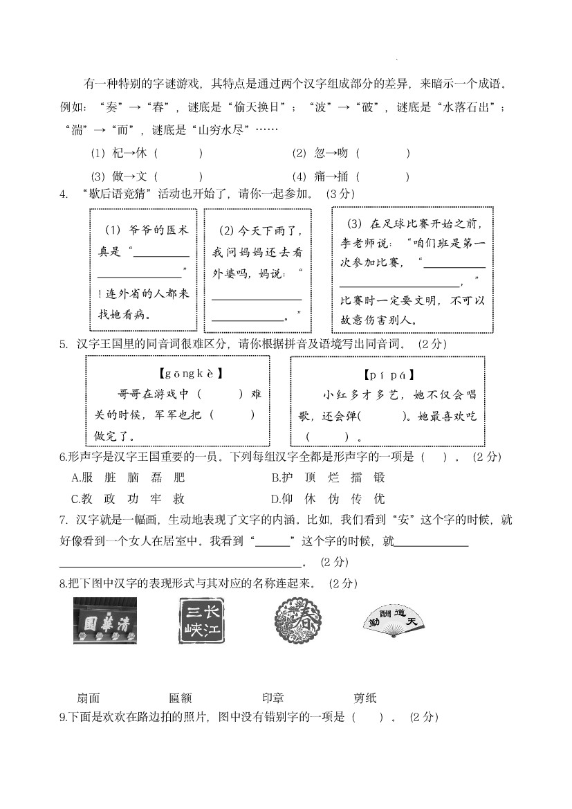 小学 【第三单元主题情境“汉字文化”自测单】五下语文