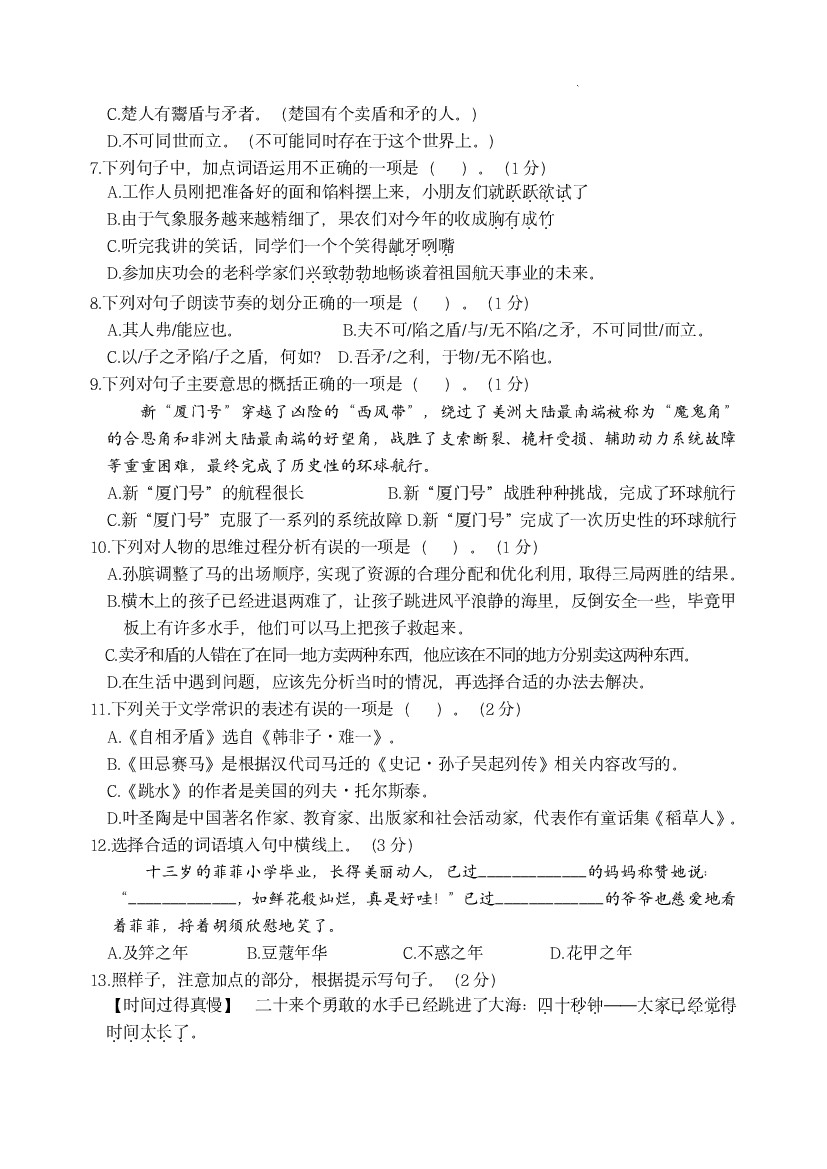 【第六单元情境题单元自测单】五下语文