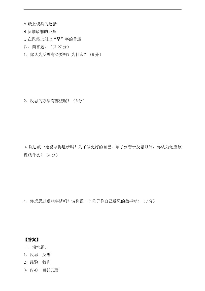 首页 > 全部 > 课时练习 > 六下道法第三课《学会反思》练习题
