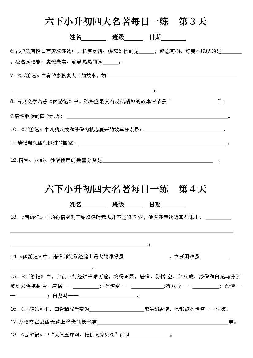 首页 > 全部 > 专项练习 > 【四大名著每日一练(小升初)】六下语文