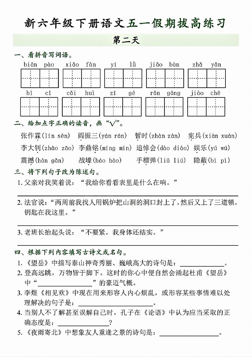 首页 > 全部 > 专项练习 > 六年级(下)语文五一假期拔高练习