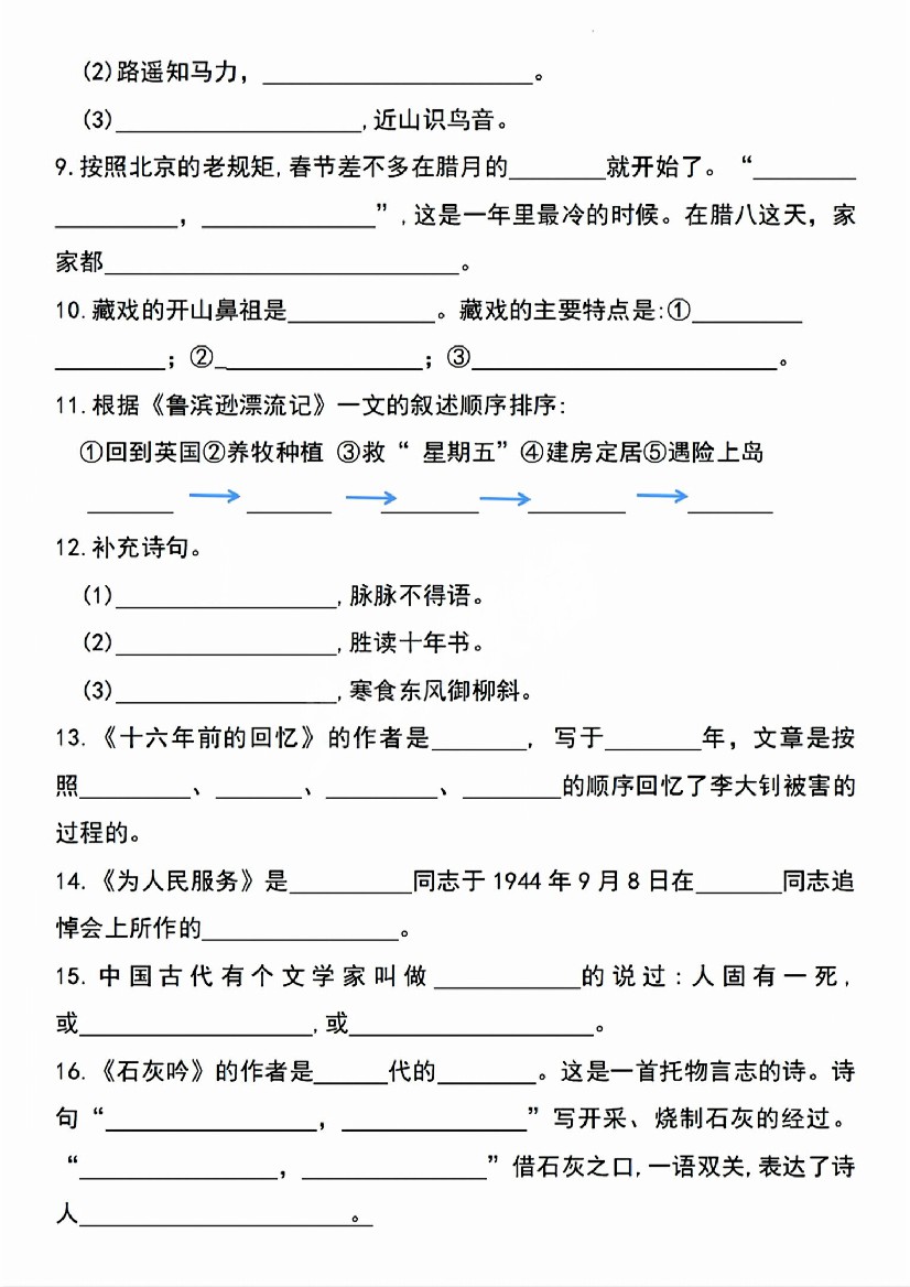 首页 > 全部 > 专项练习 > 六年级(下)语文按课文内容填空专项