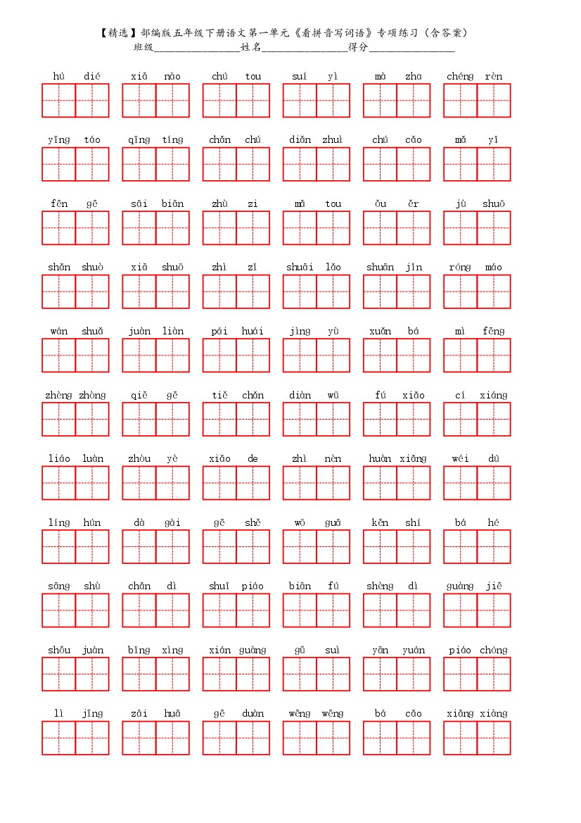 五(下)语文第一单元《看拼音写词语》专项练习
