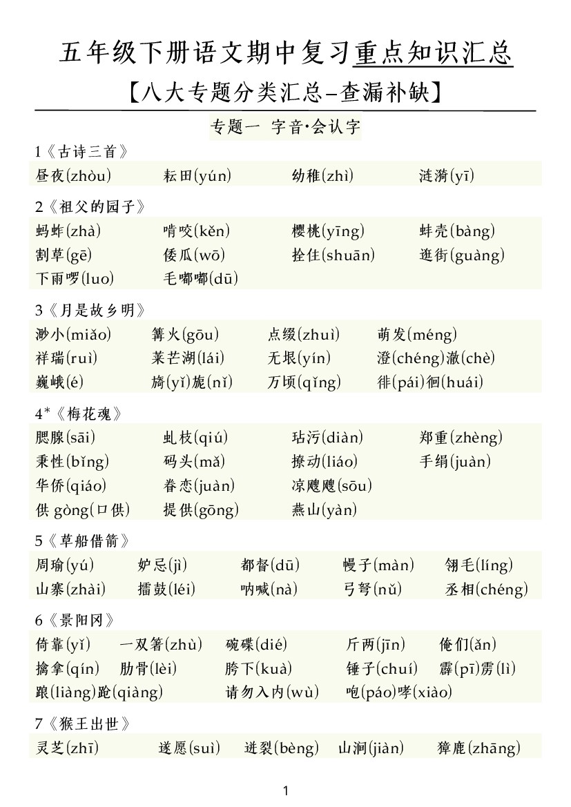 ❀五(下)语文期中复习八大专题